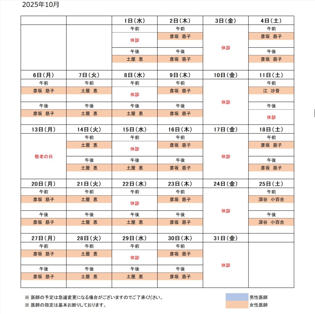 ※医師の予定は急遽変更になる場合がございますのでご了承ください。