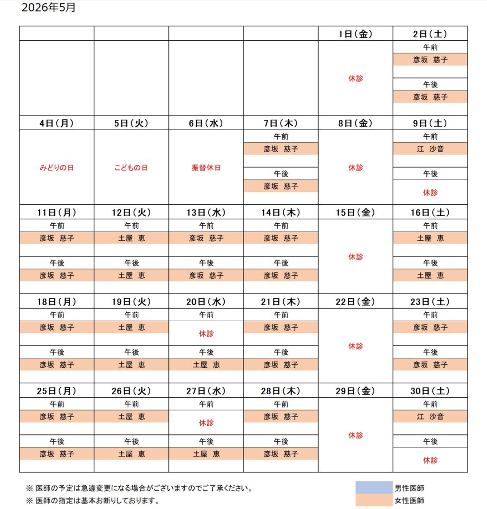 ※医師の予定は急遽変更になる場合がございますのでご了承ください。