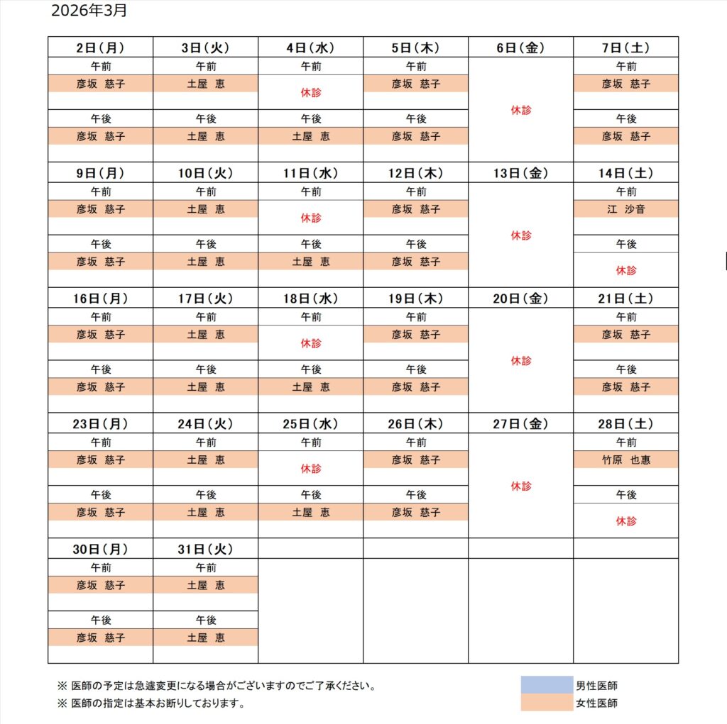 ※医師の予定は急遽変更になる場合がございますのでご了承ください。